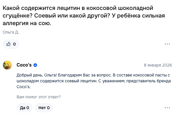- С шоколадом: патока, сахар тростниковый, мякоть кокосового ореха, какао-порошок, масло кокосовое, соль пищевая, загуститель- каррагинан, эмульгатор-лецитин.