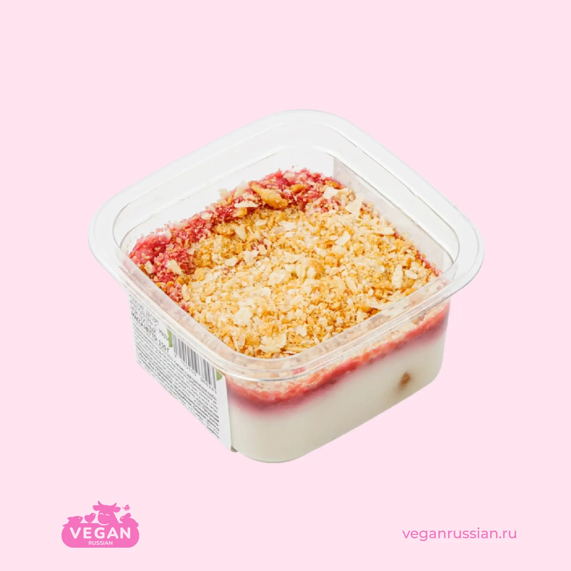 Состав: мука пшеничная хлебопекарная высшего сорта, масло подсолнечное рафинированное дезодорированное, вода питьевая, сахар, экстракт ванили, соль пищевая, начинка (напиток кокосовый (мякоть кокоса, вода питьевая), малина замороженная, вода питьевая, сахар, мука пшеничная хлебопекарная высшего сорта, загуститель - агар).