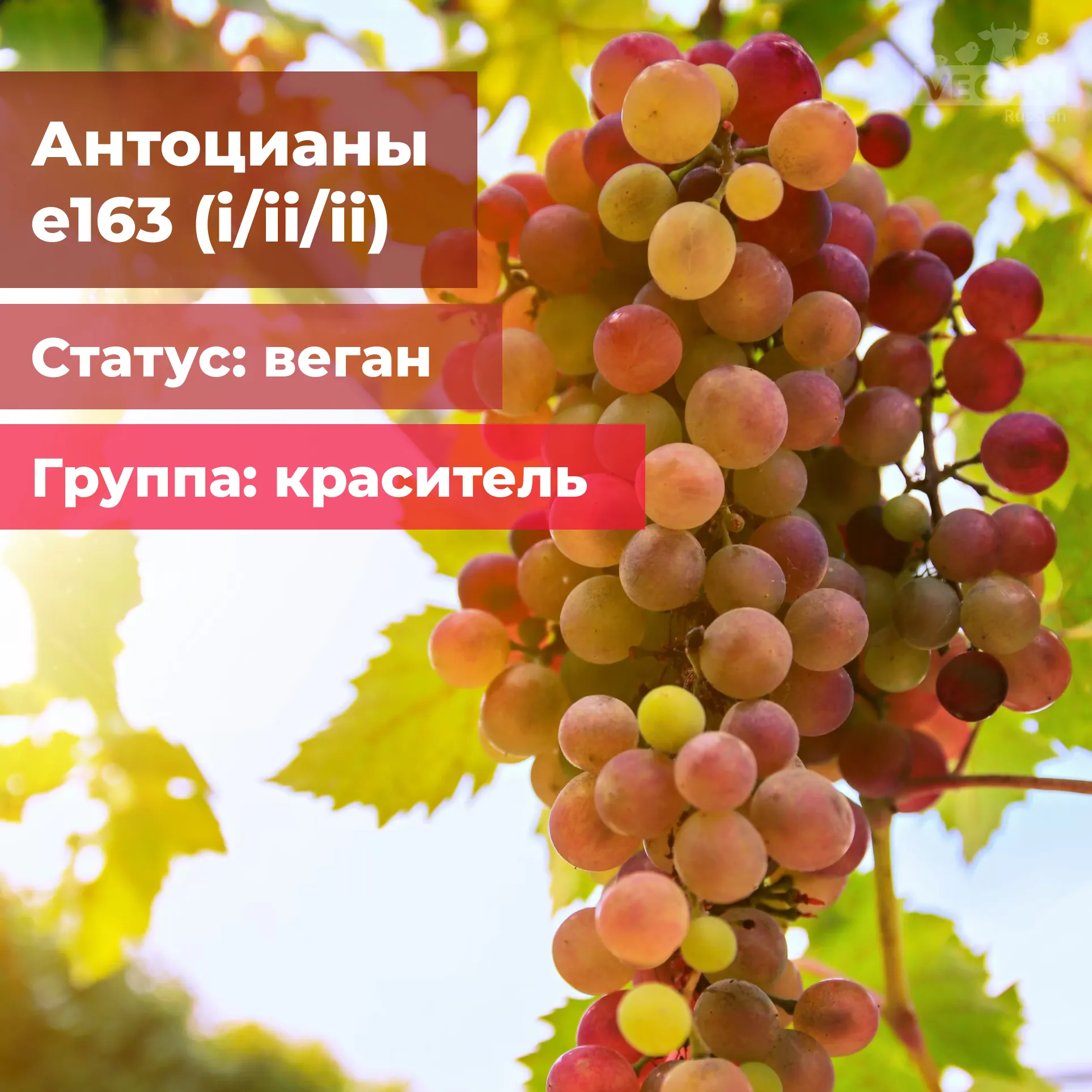 - Из растений: пигмент выделяется из вакуолей растений, например, из кожицы винограда или из черной смородины.