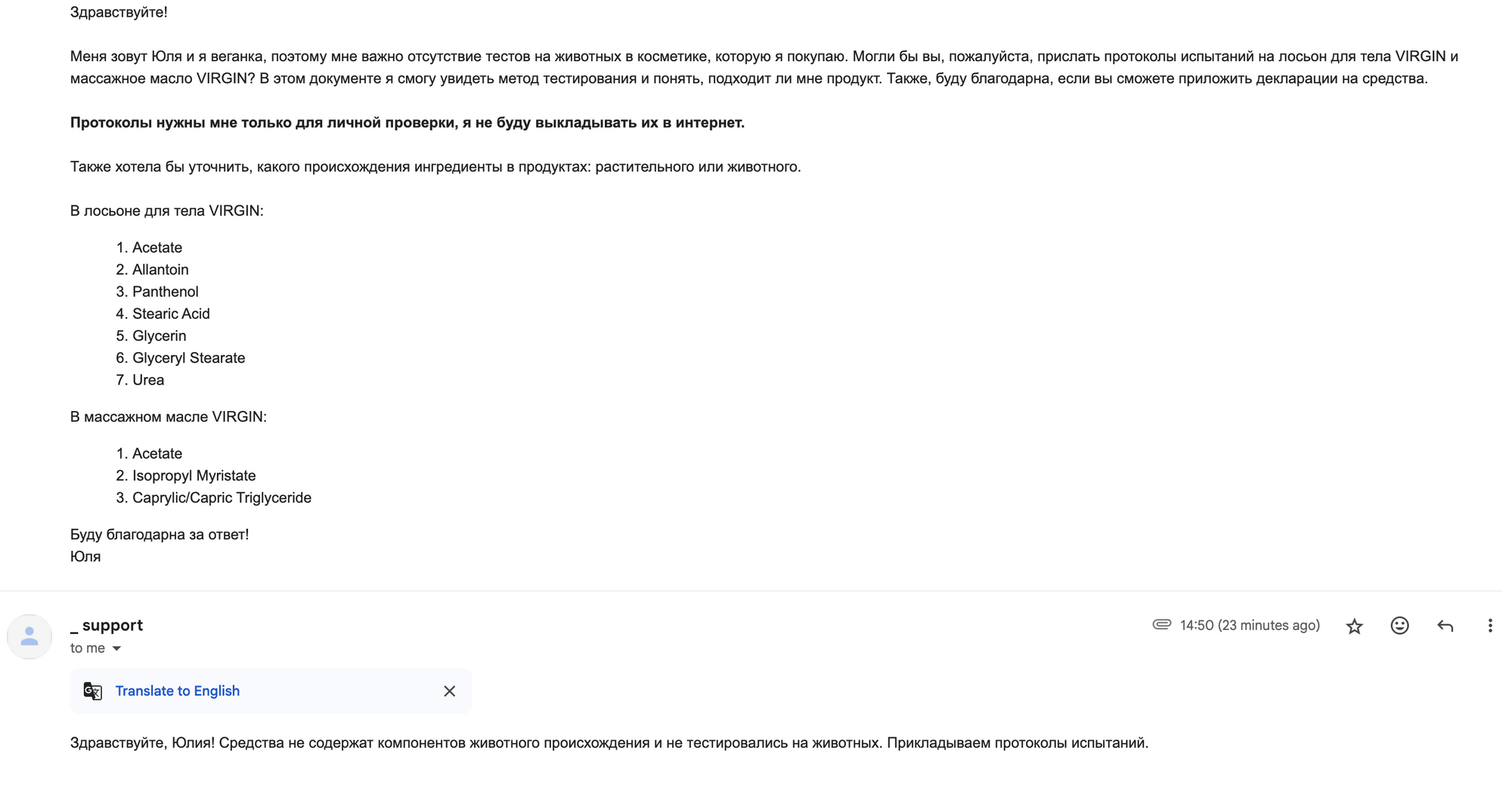 Продукт тестировался на бактериях. Это по вегану. Перепроверить протоколы после 13.08.2028.