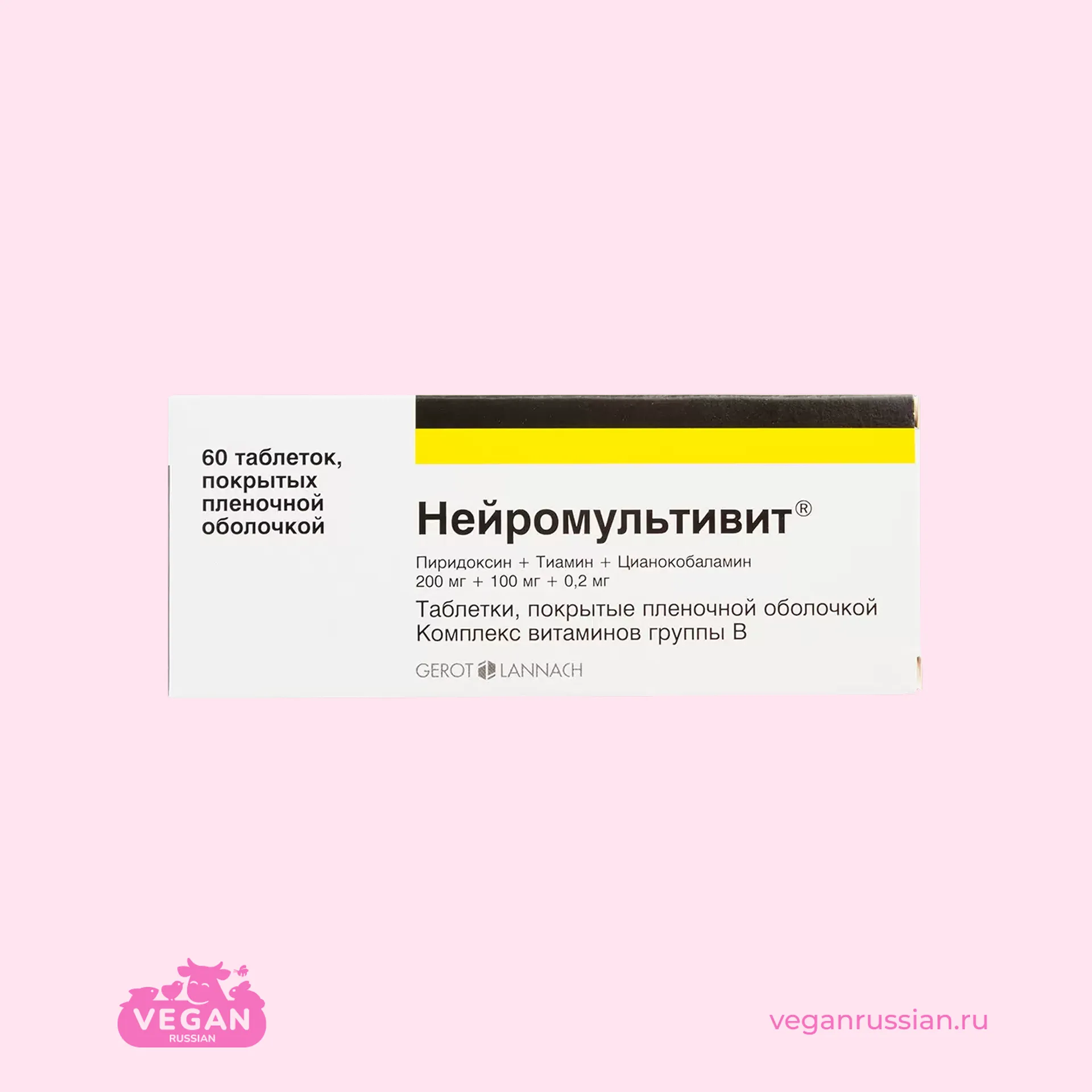 Состав: активные вещества: тиамина гидрохлорид 100,00 мг; пиридоксина гидрохлорид 200,00 мг; цианокобаламин 0,20 мг; вспомогательные вещества: микрокристаллическая целлюлоза 80,0 мг, магния стеарат 4,8 мг, повидон 15,0 мг; оболочка: макрогол 6000 9,0 мг, титана диоксид 11,25 мг, тальк 30,0 мг, гипромеллоза 7,5 мг, метилметакрилата и этилакрилата сополимер.