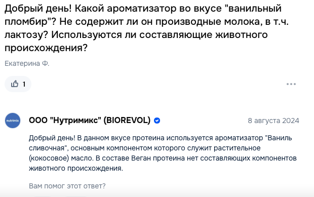 Состав: белковая смесь (изолят горохового белка, изолят рисового белка, концентрат тыквенного белка, концентрат миндального белка), мальтодекстрин, пребиотик (полидекстроза), ароматизатор Пломбир, соль поваренная пищевая, смесь стабилизаторов и загустителей (ксантановая камедь, гуаровая камедь), эмульгатор (лецитин соевый), смесь подсластителей (ацесульфам калия, сукралоза).