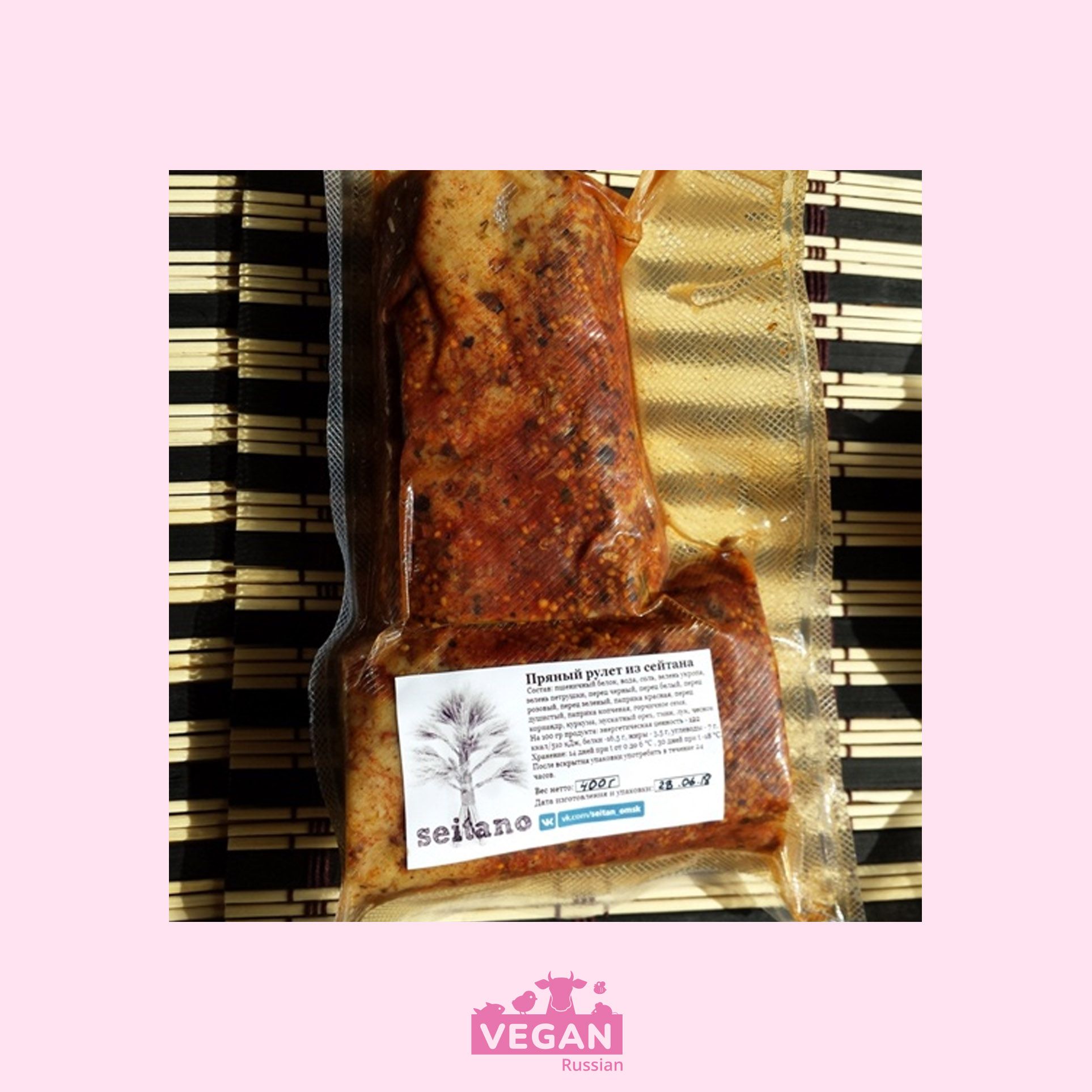 Состав: пшеничный белок, вода, соль, зелень укропа, зелень петрушки, перец черный, перец белый, перец розовый, перец зеленый, паприка красная, перец душистый, паприка копченая, горчичное семя, кориандр, куркума, мускатный орех, тмин, лук, чеснок.