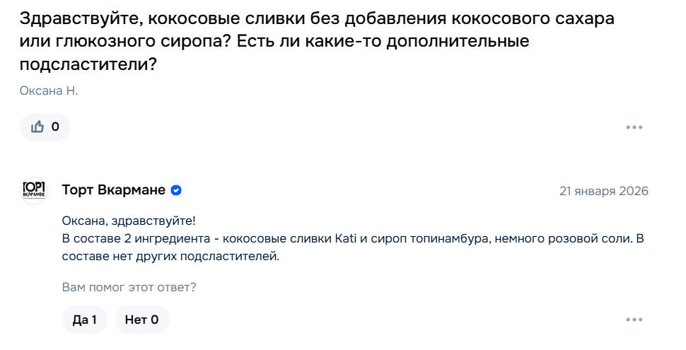 Сгущёнка Сгущёнка кокосовая кремовая Торт Вкармане 115 г Цена: 607+ руб.Магазины: Ozon.Состав: кокосовые сливки, сироп топинамбура, розовая соль.Январь 2026