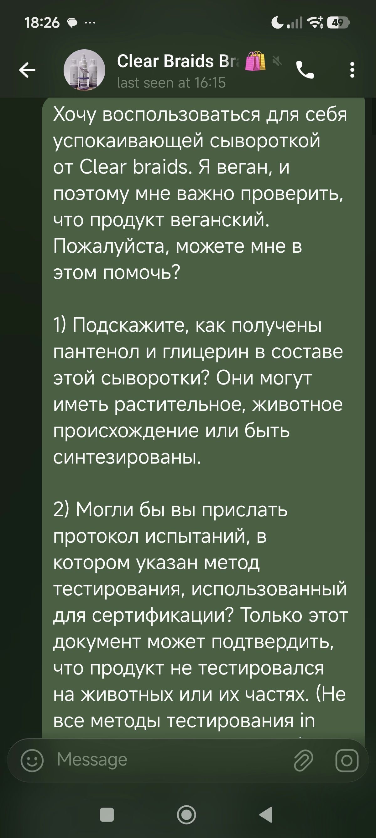 Продукт тестировался на бактериях. Это по вегану. Перепроверить протоколы после 31.08.2026.