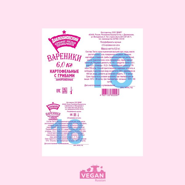 Пельмени с чечевицей и тофу Вкусно без мяса 500 г