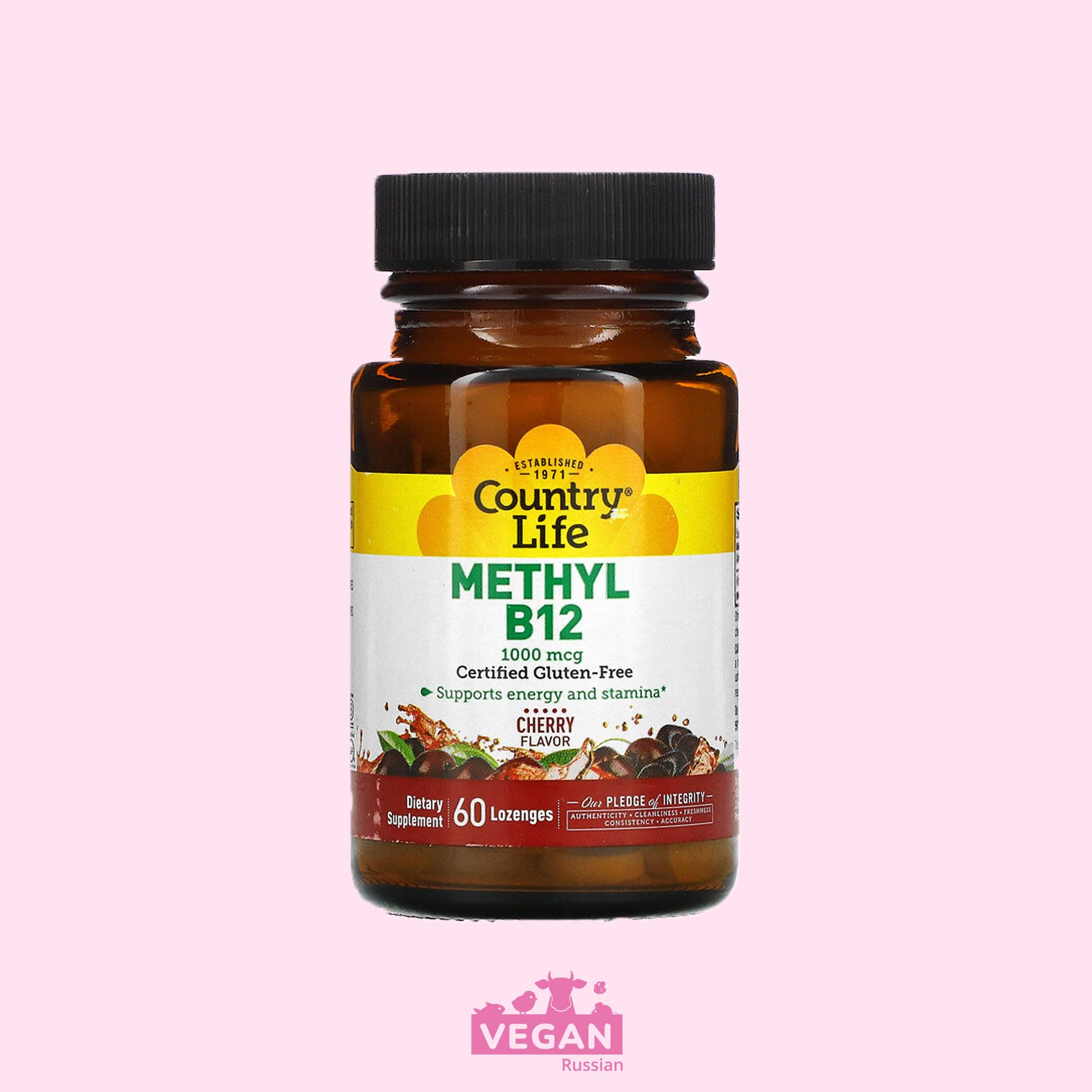 Витамин B12 метил со вкусом вишни Country Life 60 шт